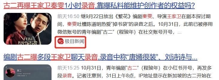 今月,一位名叫“古二”的青年编剧首次曝光了王家卫与秦雯之间的录音。