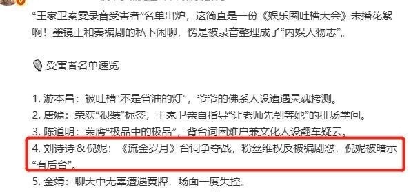 两人被传曾在《流金岁月》中有“台词争夺”的矛盾,倪妮更被暗示靠背景上位。